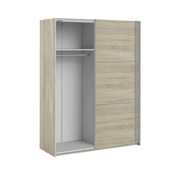 De garderobekast JANNEKE met de afmetingen (hxbxd) 202x152x64 is uitgevoerd in een licht eiken kleur. De kast heeft schuifdeuren en wordt standaard geleverd met een 2 roedes voor een hanggedeelte en 2 legplanken. De kast is makkelijk te combineren met andere meubelen. Het interieur van de kast is uit te breiden met 3 legplanken en een ladenblok om de kast geheel naar eigen wens in te delen. Door uitbreiding met 3 extra legplanken en/of een ladeblok creëer je meer opberggemak. Om de kast altijd zachtjes dicht te laten gaat is er ook een softclose beschikbaar. Je kan niet alleen je kamer naar eigen wens maken maar ook jouw kast. Perfect voor in elke kamer.