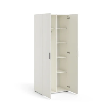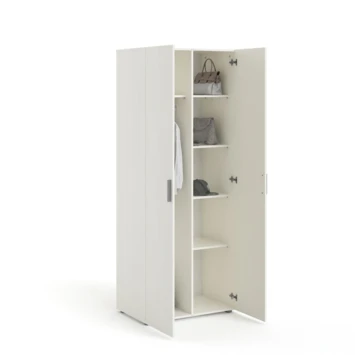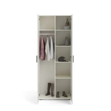 Met de garderobekast Pisa haal je veel opbergruimte in huis. Deze eenvoudig in elkaar te zetten 2-deurs kledingkast bevat 1 roede om kledij op te hangen en 5 legplanken. De kast is FSC gecertificeerd en past perfect in elke kamer en elk interieur. Ook verkrijgbaar in andere kleuren en formaten.