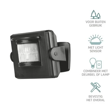 De draadloze bewegingsmelder is spatwaterdicht. Daardoor is hij heel gemakkelijk in gebruik binnenshuis én buitenshuis. De bewegingsdetectiemelder is buitenshuis te monteren, zonder installatiedraden. De zender werkt namelijk op batterijen. Met het meegeleverde bevestigingsmateriaal plaatst je de melder vervolgens op een gewenste positie. Zodra er beweging waargenomen wordt, schakelt de melder automatisch 1 of meerdere Klik Aan Klik Uit ontvangers naar keuze aan. Nadat er geen beweging meer wordt gedetecteerd wordt de verlichting automatisch weer uitgeschakeld (instelbaar op 5 seconden, 1, 5 of 10 minuten). Het bereik binnenshuis is maximaal 30 meter, buitenshuis zelfs 70 meter. De sensor heeft een compacte en strakke vormgeving, waardoor hij perfect in elk interieur past. Het signaal gaat zelfs door vloeren, wanden en deuren.