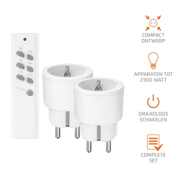 De KlikAanKlikUit Stekkerdoos Schakelaar APC2-2300 R 2 Stuks met Afstandsbediening maximaal 2300 Watt is onderdeel van het Klik Aan Klik Uit systeem. Dit systeem is makkelijk uit te breiden met meerdere KlikAanKlikUit producten. Het systeem staat bekend op het makkelijk bedienen van meerdere gekoppelde apparaten.