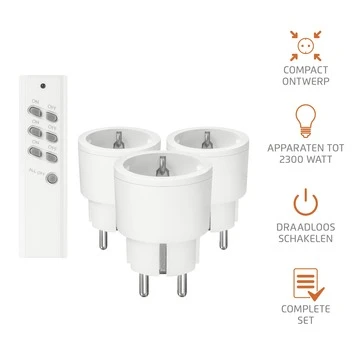 De KlikAanKlikUit Stekkerdoos Schakelaar APC3-2300 R 3 Stuks met Afstandsbediening maximaal 2300 Watt is onderdeel van het Klik Aan Klik Uit systeem. Dit systeem is makkelijk uit te breiden met meerdere KlikAanKlikUit producten. Het systeem staat bekend op het makkelijk bedienen van meerdere gekoppelde apparaten.