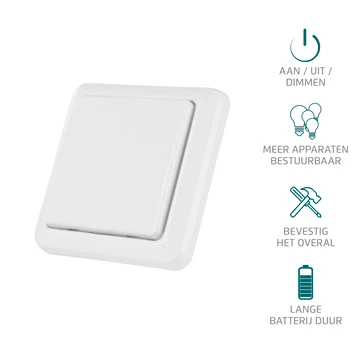 De KlikAanKlikUit Wandschakelaar AWST-8800 werkt op batterijen. Je kunt hem dus overal plaatsen zonder je te hoeven bekommeren om draden of hoge spanning. Je kunt de schakelaar met dubbelzijdig tape installeren. De schakelaar kent een automatische uitschakelfunctie die het mogelijk maakt verlichting automatisch uit te laten schakelen, zodat deze nooit onnodig blijft branden. Dit varieert van 5 seconden tot 3 uur. De ontvanger heeft een compact en strak design, waardoor hij in elk interieur past. Het radiosignaal gaat door vloeren, wanden en deuren, zodat je hem ook uit het zicht kunt plaatsen. Combineer deze KlikAanKlikUit-wandschakelaar met andere producten uit de KlikAanKlikUit-serie die je ook bij GAMMA kunt kopen. De opbouwschakelaar heeft een bereik van 30 meter.