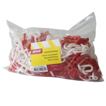 Kunststof ketting in opvallend rood en wit om snel en duidelijk een gebied voor langere tijd af te bakenen. Weerbestendig.