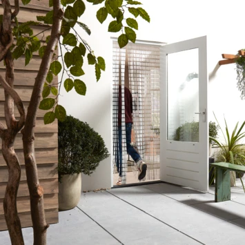 Met deurgordijn Tube van Livn houd je alle insecten buiten. Het gordijn is een handig alternatief voor een hordeur. Er hoeven namelijk geen deuren geopend te worden, dus huisdieren en kleine kinderen kunnen gemakkelijk naar binnen en buiten lopen. Met dit vliegengordijn geniet je in alle comfort van frisse lucht in huis!