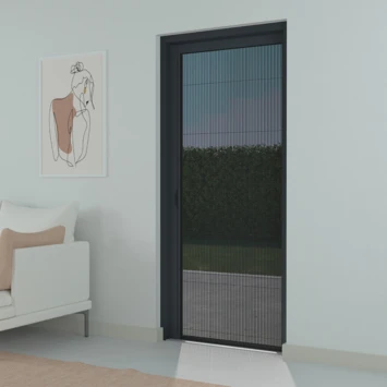 Met de uitgebreide instructies van Livn monteer jij de plisséhor Excellent helemaal zelf. Dankzij de volledig voorgemonteerde cassette is het op maat maken van de hor een fluitje van een cent. Zaag de rails in de breedte op maat. De hoogte van deze hordeur stel je zonder te zagen eenvoudig in tussen 215 en 218 cm. De ondergeleider van slechts 5 mm hoog zorgt voor een barrière-vrije doorloop. Ook neemt de plissé hordeur praktisch geen ruimte in. Gebruik je de hor niet? Dan zit het systeem ook niet in de weg. De aluminium cassette en rails zijn uitgevoerd in antraciet (RAL7016). Het zwarte polyester gaas wordt aan de onderzijde geleid door een ketting. Zo blijft het ook op een winderige dag netjes op zijn plek. Daarnaast is de plissé schuifhordeur op iedere gewenste stand open te zetten. Ideaal als je vaak van binnen naar buiten loopt en andersom!