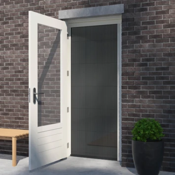 Met de uitgebreide instructies van Livn monteer jij de plisséhor Excellent helemaal zelf. Dankzij de volledig voorgemonteerde cassette is het op maat maken van de hor een fluitje van een cent. Zaag de rails in de breedte op maat. De hoogte van deze hordeur stel je zonder te zagen eenvoudig in tussen 251 en 254 cm. De ondergeleider van slechts 5 mm hoog zorgt voor een barrière-vrije doorloop. Ook neemt de plissé hordeur praktisch geen ruimte in. Gebruik je de hor niet? Dan zit het systeem ook niet in de weg. Op een wit deurkozijn vallen de witte aluminium cassette en rails (RAL9010) vrijwel niet op. Het zwarte polyester gaas wordt aan de onderzijde geleid door een ketting. Zo blijft het ook op een winderige dag netjes op zijn plek. Daarnaast is de plissé schuifhordeur op iedere gewenste stand open te zetten. Ideaal als je vaak van binnen naar buiten loopt en andersom!