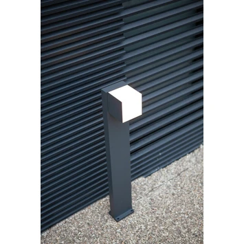 Tuinpaal met één verlichtingskop met warm licht of daglicht geïntegreerde LED-module. Het resultaat is een compacte oplossing met dezelfde uitstekende lichteffecten en oriëntatieflexibiliteit. Dit model heeft een stopcontact met pin aarding.