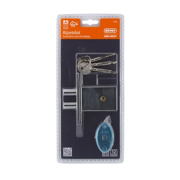 Wil je jouw deur beveiligen met een extra slot? Ga dan voor Nemef veiligheidsbijzetslot SKG* 1008. Dit slot is voorzien van het keurmerk van SKG* (Stichting Kwaliteit Gevelbouw) en hierdoor veilig. Dit bijzetslot gebruik je op deuren in combinatie met een bestaand oplegslot – een slot dat op de deur is bevestigd en niet erin – en wordt hierdoor extra beveiligd. Het slot bestaat uit twee penschoten en is uitgevoerd in vernikkeld staal, wat het sterk maakt en goed bestand tegen roest. Kortom: met dit veiligheidsbijzetslot sluit je inbraak zoveel mogelijk uit.