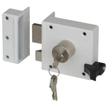 Zoals de naam al doet vermoeden, maak je een opzetslot vast op de binnenzijde van je buitendeur en niet in de deur. Dit Nemef oplegslot SKG** 4154 links wit gelakt heeft een doornmaat – maat vanaf de voorkant van de voorplaat tot het midden van het cilindergat – van 50mm en is voorzien van het keurmerk van SKG** (Stichting Kwaliteit Gevelbouw) en hierdoor extra veilig. Het slot is bedoeld voor de linkerkant van je deur en zolang deze tussen de 38mm en 42mm dik is, past dit oplegslot in principe op iedere deur. Het oplegslot wordt compleet geleverd met een sluitkast (het deel dat je in het kozijn monteert), cilinder en veiligheidsrozet, zodat je hem eenvoudig zelf kunt monteren. Kortom: met dit oplegslot komen inbrekers niet zo makkelijk bij je binnen.