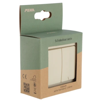 De Peha Standard serieschakelaar crème gebruikt u voor het aan- en uitschakelen van twee verschillende lichtpunten vanuit één plaats. U kunt deze crèmekleurige schakelaar niet toepassen in een wisselschakeling (hier aan, daar uit). Wilt u toch een dergelijke schakeling realiseren, dan moet u hiervoor een wissel-/wisselschakelaar gebruiken.