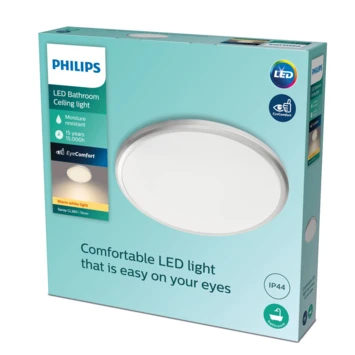 De Philips Spray is een middelgrote, witte plafonnière voor in de badkamer. De moderne plafondlamp schijnt krachtig, warmwit LED-licht en werkt meteen op volle sterkte. Het gelijkmatige licht behoudt de natuurlijke uitstraling van de huid. Daardoor is deze lichtbron bijzonder praktisch bij het scheren of opmaken. Met het handige montagesysteem kunt u de lamp eenvoudig ophangen.