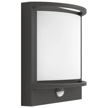 De Philips buitenlamp antraciet Samondra met bewegdingssensor is een moderne wandlamp. De stijlvolle lamp is voorzien van een bewegingssensor die er voor zorgt dat je nooitin het donker voorbij hoeft te lopen. Daarnaast is hij voorzien van geintegreerd LED met een wattage van 12W wat een mooi defuus licht opwekt. Met een IP waarde van 44 is deze lamp spatwaterdicht en dus zeer geschikt voor gebruik buitenshuis.