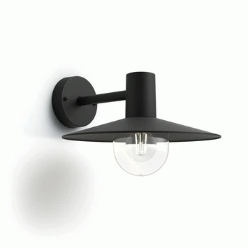 De Philips buitenlamp Skua is een retro-design lamp die geheel van deze tijd is. Het hoogwaardige aluminium armatuur in het zwart is ontworpen met een beschermingsniveau van IP44 (spatwaterdicht). Zijn lichtbron is goed zichtbaar waardoor de Philips buitenlamp Skua uitermate geschikt is voor een decoratieve LED-filament lichtbron. Kies uit ons ruime assortiment lichtbronnen en maak de wandlamp direct af.