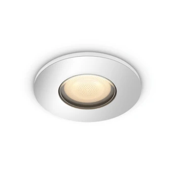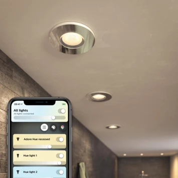 Voeg een 1-lichts Philips Hue Adore witte inbouwspot toe aan je badkamer en geniet van lichtrecepten die je helpen concentreren, lezen, ontspannen en energie opdoen. De meegeleverde White ambiance GU10 LED-spot levert warm tot koelwit licht. Via de app op je tablet of smartphone kan je de spot in- of uitschakelen en eenvoudig voor ieder moment de juiste sfeer creëren door te dimmen of tussen de lichtrecepten te schakelen. Meer slimme functies, zoals timers en geautomatiseerde routines, krijg je als je de lamp verbindt met een Philips Hue Bridge. De opbouwspot is met beschermingsklasse IP44, dus speciaal ontworpen voor natte omgevingen.