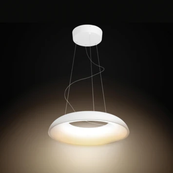 Subtiel. Dat is het woord dat wellicht het best de Philips Hue Amaze White ambiance hanglamp omschrijft. De schaal lijkt in de ruimte te zweven en is voorzien van een ingebouwde LED-lamp, die licht geeft in 50.000 warmwitte tot koelwitte tinten. De bediening is draadloos en kan met de Hue app of de meegeleverde dimmer switch: in- en uitschakelen, dimmen of keuze maken uit vier geprogrammeerde lichtrecepten. Maar er is nog meer mogelijk. Als je de lamp verbindt met een Philips Hue Bridge krijg je toegang tot alle slimme verlichtingsfuncties zoals het personaliseren van lichtscènes, timers en routines.