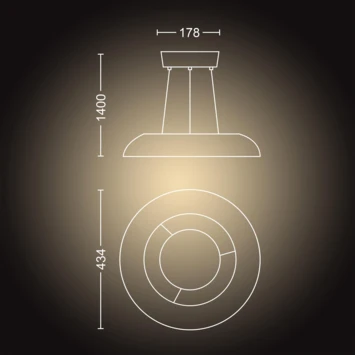 De Philips Hue Amaze White ambiance hanglamp past met zijn unieke zwarte vormgeving in elk interieur. De ingebouwde LED-lamp geeft tot wel 50.000 tinten wit licht. De lamp wordt compleet met een Philips Hue dimmer switch geleverd, waarmee je van lichtrecept kunt wisselen, de lamp in- en uit kunt schakelen en kunt dimmen. Maar deze hanglamp kun je uiteraard ook bedienen via de Hue app. Maak verbinding met de apart verkrijgbare Philips Hue Bridge voor nog meer slimme verlichtingsfuncties, zoals het personaliseren van lichtscènes en het instellen van timers en routines.