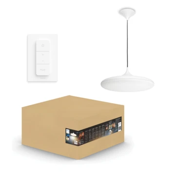 Met zijn unieke vloeiende vormgeving verfraait de witte Philips Hue Cher White ambiance hanglamp elke kamer. Je kunt de lamp instellen op รฉรฉn van de 50.000 tinten wit LED-licht. Bedien de lamp vanuit je luie stoel met de Philips Hue app of de meegeleverde Hue dimmer switch. Hiermee kan je je lamp in- en uitschakelen, dimmen en heb je keuze uit vier verschillende lichtscรจnes. Voor nog meer mogelijkheden verbind je de hanglamp met een Philips Hue Bridge. Dan heb je ook toegang tot allerlei slimme verlichtingsfuncties, zoals het personaliseren van lichtscรจnes, routines en timers.