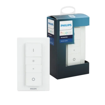 De Philips Hue dim switch is een dimmer op batterijen voor het Philips Hue-systeem. Koppel hem aan uw Philips Hue bridge, configureer hem via de app en kies uw favoriete Philips Hue-scène zonder uw smart device te gebruiken.