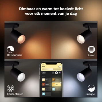 De 3-lichts Philips Hue LED opbouwspot uit de serie Fugato, is een energiezuinig alternatief voor de halogeenspot en heeft een lange levensduur. De opbouwspots zelf zijn zwart gekleurd en zijn gemaakt van metaal. De verlichtingsbron heeft een lichtopbrengst van 350 lumen en een maximale wattage van 6 watt. Dit product is ideaal om een aangename sfeer te creëren in het woonvertrek. Dit kun je doen door de lichtkleur in te stellen met je telefoon of tablet. De spots zijn richtbaar en kun je deze richten op objecten of meubilair waar jij nadruk op wilt leggen. De beschermingswaarde van dit product is IP20. Dat houdt in dat het product stofdicht is. Kort gezegd, de Philips Hue opbouwspot is een prettige verlichtingsbron voor in huis.