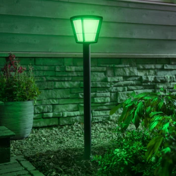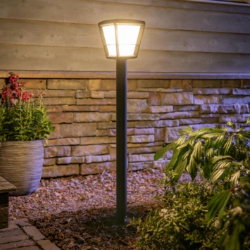 Tuinpaal Econic van Philips Hue is gemaakt van metaal en kunststof. Deze elegante lamp past perfect in een keurige tuin. De tuinpaal bevat geïntegreerde LED verlichting als lichtbron. LED is energiezuinig en heeft een lange levensduur. De verlichtingsbron heeft een grote lichtopbrengst van 1150 lumen en een wattage van 15 Watt. Met de Smarthome applicatie, stel jij zelf de gewenste lichtkleur in. De beschermingsklasse waar deze lamp onder valt is IP44. Deze is dus beschermd tegen spatwater. Kortom, de Econic tuinpaal van Philips Hue is een prettige verlichtingsbron voor buitengebruik. Deze lamp kan gemonteerd worden met een grondpen (artikelnummer 133662).