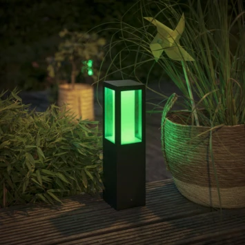 De Waca tuinsokkel van Philips Hue heeft een zwarte kleur en is gemaakt van glas en metaal. Deze tuinsokkel is een echte eyecatcher in de tuin! De buitenlamp bevat geïntegreerde LED verlichting als lichtbron. LED is energiezuinig en heeft een lange levensduur. De beschermingsklasse waar deze lamp onder valt is IP44. Dit houdt in dat deze tuinsokkel beschermd is tegen spatwater. De lichtbron heeft een grote lichtopbrengst van 1200 lumen en een maximale wattage van 16 Watt. De lichtkleur kun jij zelf instellen met de smarthome applicatie. Met deze stijlvolle tuinsokkel, creëer jij een mooi aanzicht in de tuin. Kortom, de Philips Hue tuinsokkel uit de serie Waca, is een prettige verlichtingsbron voor in de tuin of oprit. Deze lamp kan gemonteerd worden met een grondpen (artikelnummer 133662).