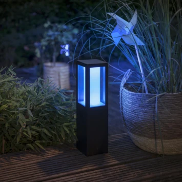 De Waca tuinpaal van Philips Hue heeft een zwarte kleur en is gemaakt van glas en metaal. Deze tuinsokkel is een echte eyecatcher in de tuin! De buitenlamp bevat geïntegreerde LED verlichting als lichtbron. LED is energiezuinig en heeft een lange levensduur. De beschermingsklasse waar deze lamp onder valt is IP44. Dit houdt in dat deze tuinsokkel beschermd is tegen spatwater. De lichtbron heeft een grote lichtopbrengst van 1200 lumen en een maximale wattage van 16 Watt. De lichtkleur kun jij zelf instellen met de smarthome applicatie. Met deze stijlvolle tuinsokkel, creëer jij een mooi aanzicht in de tuin. Kortom, de Philips Hue tuinsokkel uit de serie Waca is een prettige verlichtingsbron voor in de tuin of oprit. Deze lamp kan gemonteerd worden met een grondpen (artikelnummer 133662).