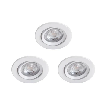 De witte Philips Sparkle inbouwspotjes schijnen aangenaam warmwit LED-licht, zonder te veel op te vallen. Combineer deze drie verstelbare spotjes met een geschikte dimmer en speel met de lichtintensiteit: helemaal aan als u wat meer licht nodig hebt, gedimd als u wat sfeer wilt creëren. De duurzame en energiezuinige spotjes kunnen in de meeste standaard verlaagde plafonds worden gemonteerd.