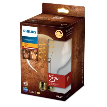 Met deze Philips LED filamentlamp zorgt u voor extra sfeer in huis. Ze zorgen voor een stijlvol lichtelement en geven sfeervol warmwit licht. Deze lamp heeft een mooie coating en in de lamp zie je een dimbare lichtspiraal, wat doet denken aan gloeilampen van vroeger. Met EyeComfort, voor licht dat aangenaam is voor uw ogen. De lamp heeft een E27-fitting, en past dus in de meeste lampen met grote fitting.