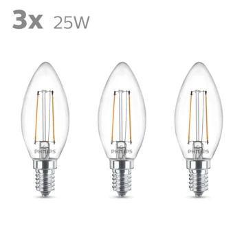 Philips LED Kaars E14 25W 3 Stuks Filament Helder Niet Dimbaar