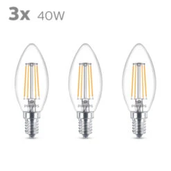 Philips LED Kaars E14 40W 3 Stuks Filament Helder Niet Dimbaar