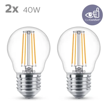 Philips LED Kogel E27 40W 2 Stuks Filament Helder Niet Dimbaar