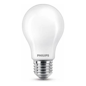 Vervang uw oude lamp met een nieuwe energiezuinige Philips LED-lamp, met warmwit licht. Deze standaardlamp verbruikt circa 80% minder energie dan traditionele lampen dankzij de nieuwste energiezuinige LED-technologie en ze gaan tien keer langer mee. Met EyeComfort, voor licht dat aangenaam is voor uw ogen. Deze lamp heeft een E27-fitting, en past dus in de meeste lampen met grote fitting.
