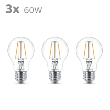 Philips LED Peer E27 60W 3 Stuks Filament Helder Niet Dimbaar
