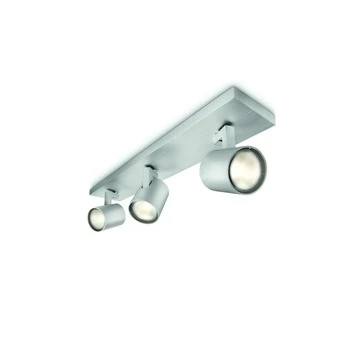De Philips triospot Runner aluminium is voorzien van een GU10 fitting en is geschikt voor halogeenlampen met een vermogen tot 50 watt. De spots zijn richtbaar zodat u de lichtstraal gemakkelijk kunt afstellen. De geometrische vormen van aluminium geven de triospot een industriële uitstraling. Kortom, de Philips Runner triospot is een blikvanger voor in elk modern interieur.