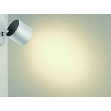 De witte Philips opbouwspot, is een energiezuinig alternatief voor de halogeenspot en heeft een lange levensduur. Deze wandlamp heeft een lichtopbrengst van 500 lumen en een wattage van 4.5 watt. Dat is te vergelijken met 40 watt van een ouderwetse gloeilamp. Met een kleurtemperatuur van 2700 kelvin, is dit product ideaal om een aangenaam warme sfeer te creëren in de woonkamer of slaapkamer. De verlichtingsbron heeft een IP waarde van 20 en is hiermee beschermd tegen stof. De lamp valt onder energieklasse A+. Dit is een van de meest zuinige energieklasse. Kort gezegd, de Philips opbouwspot is een ideale verlichtingsbron voor in de woonruimte.