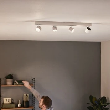 De Philips Star is een witte metalen lamp in een moderne stijl. De spotlamp is dan ook zeer geschikt voor de woon- en slaapkamer met een strak interieur. De LED- lampen zijn richtbaar, waardoor jij zelf kan bepalen waar het licht op gericht moet zijn. Door te dimmen kan je altijd de juiste sfeer aan een kamer geven, hoe meer je de lamp dimt hoe warmer de sfeer wordt. De spots geven een warm wit licht en dankzij de WarmGlow technologie kan je switchen tussen een helder licht om te kunnen concentreren of een warmer licht om lekker te kunnen ontspannen. De montage van de LED spots is erg eenvoudig door het click!Fix- systeem. Hiermee kan je de lamp in 4 stappen eenvoudig installeren. Kortom, met de Philips Opbouwspot MyLiving Star LED Wit 4 x 4.5W heb je altijd de juiste belichting voor het juiste moment.