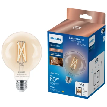 Met deze grote bolvormige Philips Smart LED filamentlamp met E27-fitting, geef je een trendy sfeer aan je woninginrichting. De lamp is eenvoudig te bedienen via de WiZ app. Dim de lamp, zet hem feller, selecteer een andere wittint of kies één van de voorgeprogrammeerde lichtscènes. Stel bijvoorbeeld een 24-uurs ritme in en word wakker met koel licht om met wat extra energie aan de dag te beginnen. ’s Avonds laat wordt het licht automatisch wat warmer, zodat je lekker ontspannen onder de wol kunt kruipen. Ontdek nog veel meer ritmes en scènes, waar je elke dag wat aan hebt. Gemakkelijk te bedienen via je eigen wifinetwerk met de WiZ app of je stem.