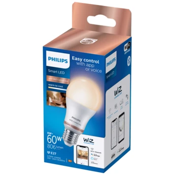 Deze slimme peervormige Philips Smart LED lamp met E27-fitting geeft prachtig warm- tot koelwit licht. De lamp is eenvoudig te bedienen via de WiZ app. Dim de lamp, zet hem feller of kies één van de voorgeprogrammeerde dynamische lichtscènes. Stel bijvoorbeeld een 24-uurs ritme in en word wakker met koelwit licht om met wat extra energie aan de dag te beginnen. ’s Avonds laat wordt het licht automatisch wat warmer, zodat je lekker ontspannen onder de wol kunt kruipen. Ontdek nog veel meer ritmes en scènes, waar je elke dag wat aan hebt. Gemakkelijk te bedienen via je eigen wifinetwerk met de WiZ app of je stem.