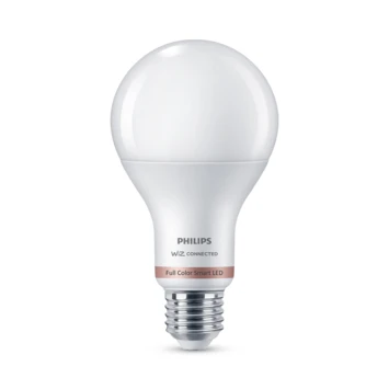 Deze peervormige Philips Smart LED lamp geeft gekleurd, krachtig licht en past in de standaard E27-fittingen in je huis. De lamp is eenvoudig te bedienen via de WiZ app. Zo kun je de lampen gemakkelijk dimmen, feller zetten of één van de voorgeprogrammeerde lichtscènes kiezen. Gebruik ritmes om je lampen op bepaalde tijden automatisch van wittint of kleur te laten veranderen. Je kunt de ritmes naar wens aanpassen door verschillende dynamische lichtscènes te combineren. Wat dacht je van lampen die doen denken aan een knisperend haardvuur, een blauwe oceaan of een prachtige lente dag? Gemakkelijk te bedienen via je eigen wifinetwerk met de WiZ app of je stem.
