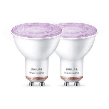 Maak de standaard inbouwlampen en spotjes in je huis slim met de warme gloed van deze twee gekleurde Philips Smart LED GU10-spots. De lampen zijn eenvoudig te bedienen via de WiZ app. Zo kun je de spots gemakkelijk dimmen, feller zetten of één van de voorgeprogrammeerde lichtscènes kiezen. Gebruik ritmes om je lampen op bepaalde tijden automatisch van wittint of kleur te laten veranderen. Je kunt de ritmes naar wens aanpassen door verschillende dynamische lichtscènes te combineren. Wat dacht je van lampen die doen denken aan een knisperend haardvuur, een groen bos of een prachtige lente dag? Gemakkelijk te bedienen via je eigen wifinetwerk met de WiZ app of je stem.