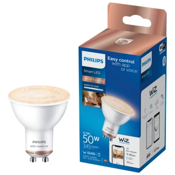 Maak de standaard inbouwlampen en spotjes in je huis slim met de aangename gloed van de Philips Smart LED GU10-spot, die je kunt instellen van warm- tot koelwit licht. De lamp is eenvoudig te bedienen via de WiZ app. Dim de lamp, zet hem feller of kies één van de voorgeprogrammeerde lichtscènes. Stel bijvoorbeeld een 24-uurs ritme in en word wakker met koel licht om met wat extra energie aan de dag te beginnen. ’s Avonds laat wordt het licht automatisch wat warmer, zodat je lekker ontspannen onder de wol kunt kruipen. Ontdek nog veel meer ritmes en scènes, waar je elke dag wat aan hebt. Gemakkelijk te bedienen via je eigen wifinetwerk met de WiZ app of je stem.