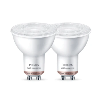 Maak de standaard inbouwlampen en spotjes in je huis slim met de aangename gloed van deze twee Philips Smart LED GU10-spots, die je kunt instellen op elke tint warm- tot koelwit licht. De lampen zijn eenvoudig te bedienen via de WiZ app. Dim de spots, zet ze feller of kies één van de voorgeprogrammeerde lichtscènes. Stel bijvoorbeeld een 24-uurs ritme in en word wakker met koel licht om met wat extra energie aan de dag te beginnen. ’s Avonds laat wordt het licht automatisch wat warmer, zodat je lekker ontspannen onder de wol kunt kruipen. Ontdek nog veel meer ritmes en scènes, waar je elke dag wat aan hebt. Gemakkelijk te bedienen via je eigen wifinetwerk met de WiZ app of je stem.