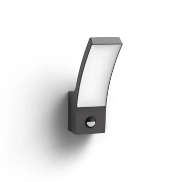 De antraciete Philips Splay muurlamp geeft je huis een moderne uitstraling. Gebruik deze eigentijdse lantaarn om je entree te verlichten met diffuus, warmwit licht. Door de ingebouwde bewegingssensor springt de lamp automatische aan bij bezoek of ongewenste gasten. Dit geeft een je een veilig gevoel.