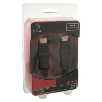Met behulp van de Q-link HDMI-kabel sluit u een dvd, versterker of computer digitaal aan op een plasma- of lcd-beeldscherm. De signaaloverdracht van zowel audio- als videosignalen tussen uw apparaten blijft daarbij optimaal. De draaibare HDMI-kabel is namelijk voorzien van gold plated-stekkers, zodat uw beeldkwaliteit behouden blijft. De 2 meter lange kabel is 19-polig aangesloten en wordt geleverd met 2 draaibare HDMI-stekkers. Deze stekkers die 180º kunnen draaien, stellen u in staat om de HDMI-kabel ook te gebruiken voor een tv die aan de wand is gemonteerd.