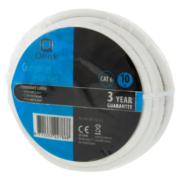 Met de UTP-kabel van Q-link leg je een computernetwerkverbinding aan en verbindt u computers, printers en IP-camera?s. De kabel is 10 meter lang en zorgt voor een snelle signaaloverdracht van netwerktoepassingen tot 1GB. Het twisted pair-snoer voorkomt storingen van de netwerkverbinding. Gebruik ook afgeschermde connectoren om het signaalverlies zo veel mogelijk te beperken. Je maakt de UTP-internetkabel zelf op maat met afgeschermde UTP-pluggen.