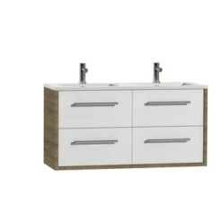 Tiger Badkamermeubel Boston 60 Cm Chalet Eik Met Polybeton Wastafel Wit En Ronde Grepen Chroom