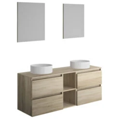 Allibert Badmeubelset Mike 40 Cm Eik Met Porceleinen Wastafel Compact Met Grote Opslagcapaciteit