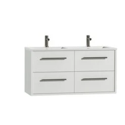 Tiger Badkamermeubel Boston 60 Cm Chalet Eik Met Polybeton Wastafel Wit En Ronde Grepen Chroom