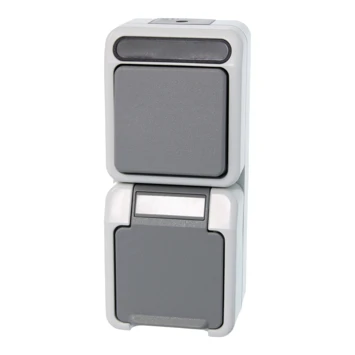 De Merten opbouwstopcontact combinatie wissel/1-polig met randaarde uit de Aquastar serie is (spat)waterdicht en dus bestand tegen weer en wind. Alle producten uit deze serie zijn bij uitstek geschikt voor gebruik buitenshuis. Deze geaarde stopcontactcombinatie combineert wisselschakelaar en wandcontactdoos in één unit en bespaart dus ruimte. De ‘aarde’ zorgt ervoor dat, in geval van kapotte- of losgeschoten bedrading in een apparaat (bv. wasmachine of computer), de metalen delen niet onder stroom komen te staan, de stroom wordt dan via een extra aardedraad in de aarde geleid.