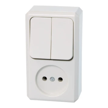De Schneider Electric combinatieschakelaar 2x1polig wit is een opbouwcombinatieschakelaar die geschikt is voor montage van elektra op muren of wanden, zoals in de garage of op zolder. Met de serieschakelaar kunt u twee verschillende lichtpunten vanuit één plaats aan- of uitschakelen. De witte schakelaar combineert een serieschakelaar en wandcontactdoos in één unit en bespaart daarmee dus ruimte.